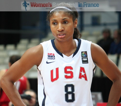 Whalen (right) led the USA with 16 points as her side cruised to victory (87-46).