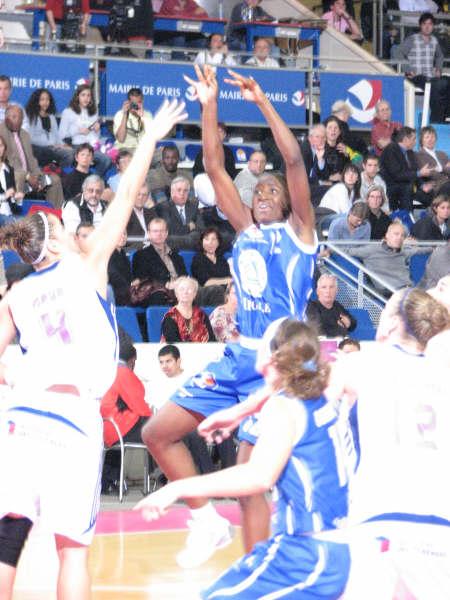 Mann was on hand to complete an 8:0 run with another trey, her second one of the evening. The next few minutes were interesting as both sides played to their strengths cancelling each other out, exchanging basket for basket with Tarbes maintaining their lead (26-22). St Amand played inside and eventually tied the game (26-26). Tarbes reverted back to their perimeter game and Mann hit another trey but the lead was short-lived as Elena Ogorodnikova connected with one from the land of many but Tarbes had the last score to go into the interval leading (31-29).